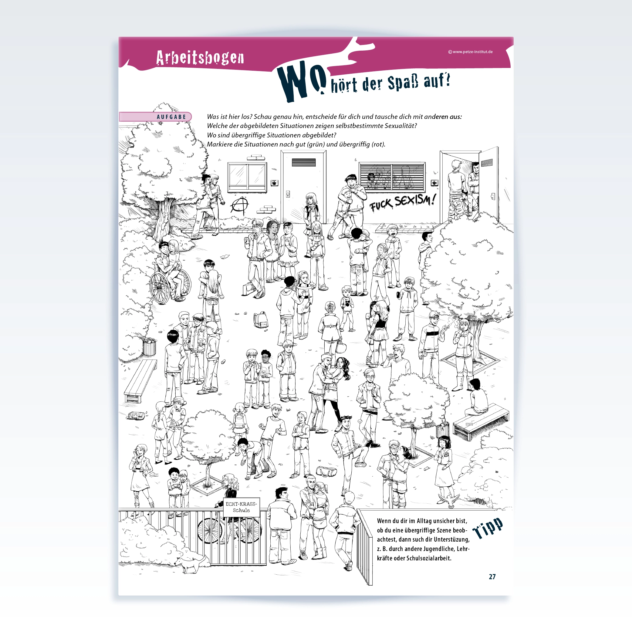 Sexuelle Gewalt durch Gleichaltrige gehört zum Alltag von Jugendlichen – die Übergriffe reichen von sexistischen Sprüchen über sexuelle Belästigung im Internet bis zur Vergewaltigung. Dabei entstehen Grenzverletzungen mitunter aus Unwissenheit über Sexualität und den Möglichkeiten der Kontaktaufnahme. Betroffene Jugendliche brauchen Informationen und Orientierung, um Schutz und Hilfe zu finden.